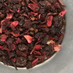 The color of the mélange once steeped is a beautiful, dark berry color that is bursting with flavor! Loved by young and old alike. Our family enjoys this tea hot, cold and frozen, yes- frozen, it makes great homemadepopsicles! Our blend includes Hibiscus, grapes, elderberries, flavoring, black currants, and blueberries.